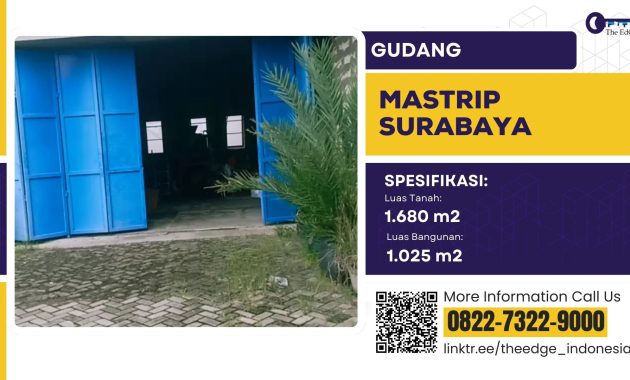 BANYAK PILIHAN GUDANG AREA :Sidoarjo : Taman, Gedangan, Buduran,Tambak SawahSurabaya : Rungkut Industri SIER, Margomulyo, BenowoGresik : Menganti, Romokalisari, KIG, Driyorejo, KebomasMojokerto : By Pass Krian, Ngoro Luas Bangunan Mulai 1.000 m2 – 60.000 Spesifikasi :Luas Tanah 1.680 m2Luas Bangunan 1.025 m2Sertifikat SHMHadap Timur 8 Manfaat menggunakan Jasa The EdGe :